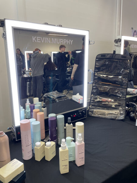 Plus d’un mois après avoir été partenaire du défilé Haute Couture de Rami Ali pour la 14e année consécutive, Kevin Murphy était en coulisses du show prêt-à-porter de la créatrice chinoise, Didu, pour le défilé automne-hiver 2024-2025. Accompagné de son équipe, Laurent Philippon, coiffeur star, a imaginé des looks audacieux en harmonie avec l’espièglerie de la garde-robe : ligne de coloration rouge, mulet, coiffé/décoiffé… Pour obtenir un fini texturé mais naturel, l’équipe de Kevin Murphy a utilisé le Hair.Resort.Spray, le spray poudré Doo.Over, le Session.Spray et la brume Shummer.Shine.