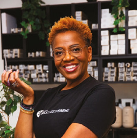 Amoureuse des cheveux texturés, ambassadrice pour Jacques Seban et DevaCurl, formée en Angleterre, elle a fondé avec sa soeur Boucles d’Ébène Studio en 2004.
