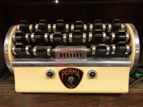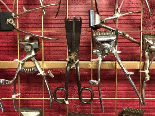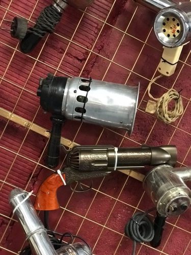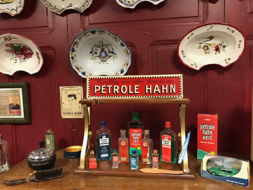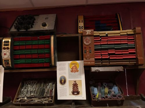 Dans cette caverne d’Ali Baba dédiée à la coiffure, aux 4000 trésors, l’espace présente pas moins d’une vingtaine de thèmes : tondeuses et ciseaux, fers à friser et fers à gaufrer, sèche-cheveux électriques, blaireaux, rasoirs électriques et rasoirs papillons, appareils à permanentes (dont un modèle de 1930), enseigne de coiffure, flacons, bouteilles de lotion…