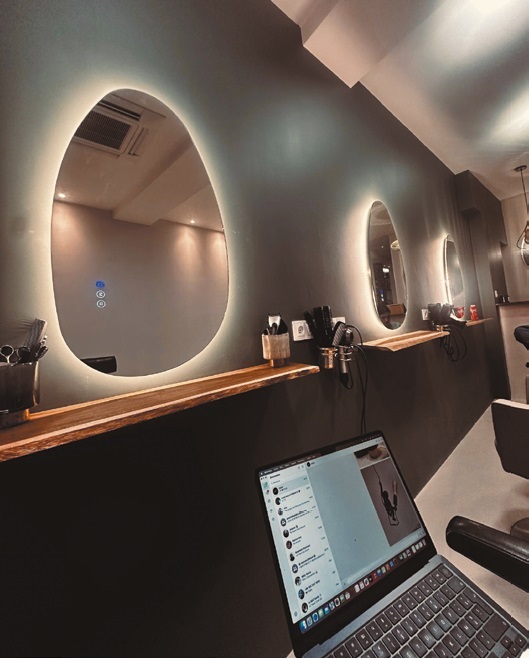Et l’éclairage ? Il aide forcément à agrandir l’espace de la pièce. Un salon bien éclairé semble par exemple plus grand qu’un salon sombre. Molly n’a donc pas hésité à multiplier les sources d’éclairage. « On a privilégié les suspensions au design élancé au niveau de la caisse et des trois bancs de coiffage », précise Molly. Enfin, en entrant, sur la gauche, près de la vitrine, la maîtresse des lieux a invité ses client(e)s à signer ou à déposer un petit mot sur l’un des murs du salon. Afin d’immortaliser ce lieu magique. Bienvenue chez Molly !