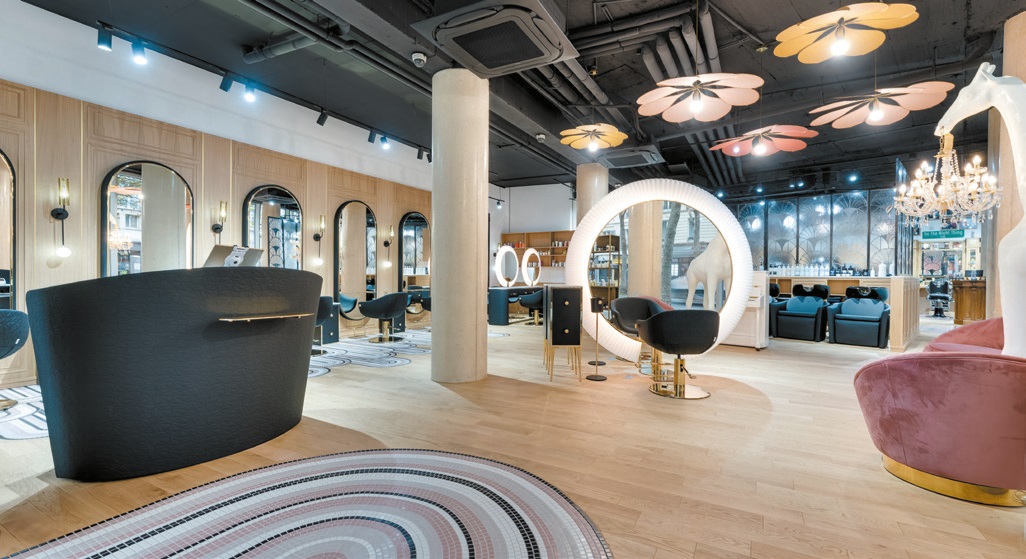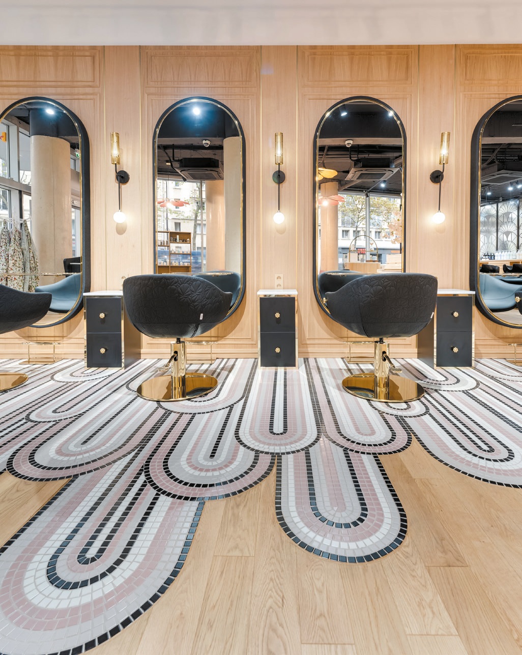 L’objectif principal était de révéler un véritable esprit de maison de famille, en revisitant les codes Art déco. « Derrière la déco, il y a la joie de proposer deux univers pour des familles et pour qu’elles s’y sentent bien », souligne Sonia. Car le code du bien-être dans un salon de coiffure a changé : se sentir bien chez son coiffeur est désormais un enjeu majeur.