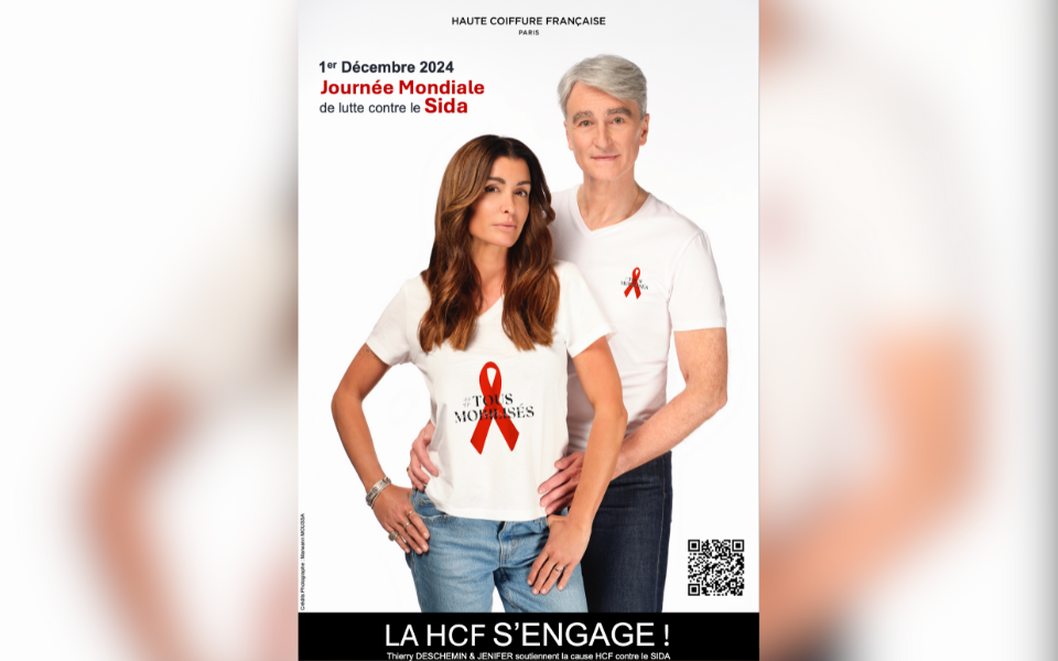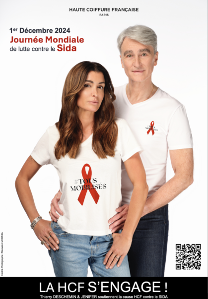 Le 1er décembre prochain pour la Journée mondiale de lutte contre le Sida, la Haute Coiffure Française (HCF) avec Thierry Deschemin et Jenifer renouvellent leur engagement afin de sensibiliser à nouveau la communauté des coiffeurs et contribuer activement à la lutte contre cette maladie.