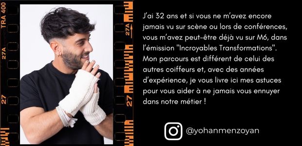 « …Et si vous ne m’avez encore jamais vu sur scène ou lors de conférences, vous m’avez peut-être déjà vu sur M6, dans l’émission Incroyables Transformations. Mon parcours est différent de celui des autres coiffeurs et, avec des années d’expérience, je vous livre ici mes astuces pour vous aider à ne jamais vous ennuyer dans notre métier«