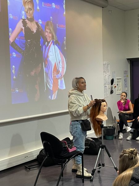- Samantha Crouzet Gaune, formatrice chignon dans l’équipe de Raphaël Perrier, formatrice concours pour l’Unec Drôme Ardèche, a partagé son parcours artistique ! Les élèves ont pu apprécier une démonstration d’attache rapide.