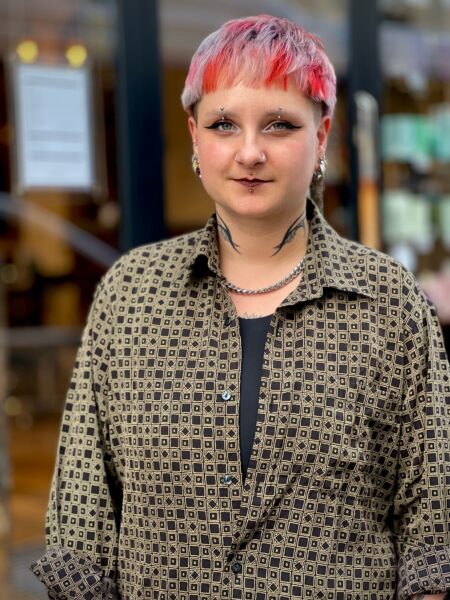 Originaire du Havre, Sarah, 32 ans, a travaillé dans le social et la restauration avant de se lancer dans la coiffure. Le déclic ? Pendant le premier confinement, elle coupe les cheveux de sa petite soeur. Dès lors, elle commence à coiffer ses proches et les demandes affluent. « J’ai toujours été attirée par différentes formes de pratiques artistiques. Finalement, je suis tombée dans la coiffure malgré moi et c’est une chance ! » confie-t-elle. Autodidacte, elle est appelée à tenir des stands coiffure sur des événements en Normandie, organisés par l’association Full Sentimental ou encore sur le festival électro 329.