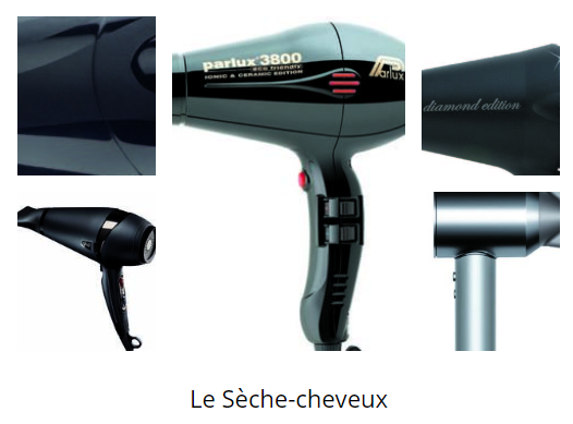 Le coiffeur doit s’équiper de matériel professionnel. Pour une efficacité correcte, il faut compter entre 2300 et 2500 watts (contre les 2000 watts proposés au grand public en supermarché).