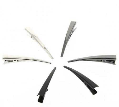 Les pinces dites « croco » en raison de leur forme allongée et dentée. En métal ou en plastique de type résine, antidérapantes, elles permettent de maintenir les mèches pour faire des séparations lors d’une coupe, d’une permanente ou d’un brushing. C’est le matériel de base d’un coiffeur, même débutant.