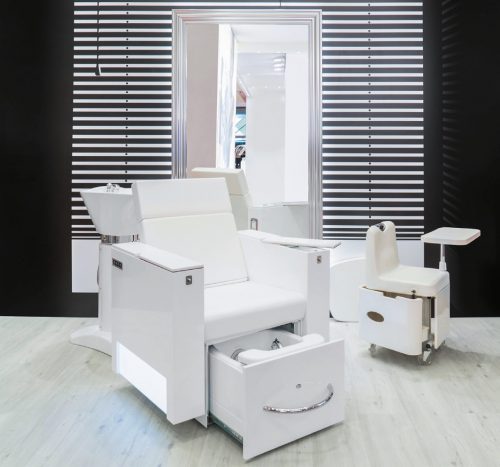 – Bacs à shampooing avec un réglage électrique en hauteur (dont l’un des modèles est adapté aux personnes à mobilité réduite)