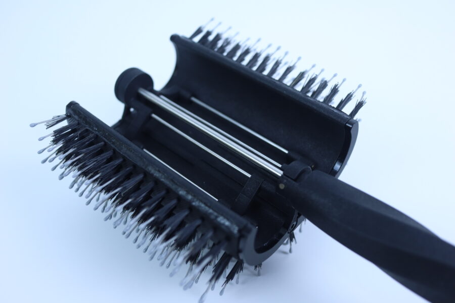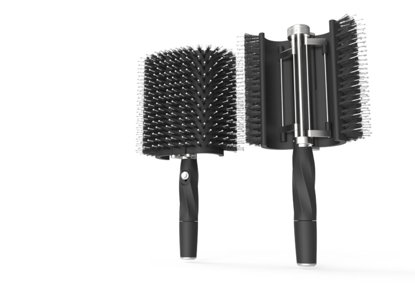 Fondée par deux jeunes femmes, Alexandra Capart, docteure en pharmacie, et Sarah-Marie Bartoletti, entrepreneuse, la société Limited International Production lance My New Brush. Cette brosse brevetée, 2 en 1, sans apport de chaleur, fabriquée à partir de matériaux durables et biodégradables, dotée d’une tête garnie de picots (sanglier et nylon) combine démêlage et brushing. Le passage fermé à la configuration ouverte se fait par un bouton placé sur le manche. En position 1, un lissage pour démêler. En position 2, un enroulement des mèches pour réaliser un brushing.