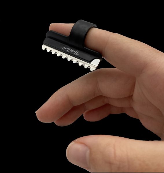 Après de multiples expériences comme démancher un feather pour l’attacher à son doigt, Cathy Batit n’obtient pas encore le résultat escompté. « Avec un ami chaudronnier, nous avons créé une première bague » rappelle-t-elle. C’est finalement en rencontrant l’ingénieur Samuel Bonnard que le couple parvient à ses fins. « On lui a donné le prototype et il a réussi à façonner l’outil parfait, avec une coupe et un tranchant au plus proche du ciseau. »