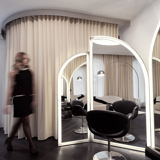En 1952, l’installation au 11, rue du Faubourg-Saint-Honoré, artère du luxe à Paris, marque un tournant. Dans un premier temps un salon puis une Maison de Beauté, leur adresse devient la destination incontournable des femmes en quête d’excellence et de bien-être. En 2022, la belle endormie a rouvert ses portes après deux ans de rénovation. Désormais étendue sur 1 800 m2, elle rassemble toutes les expertises de soin – visage, corps, cheveux et soins esthétiques – ainsi qu’un restaurant gastronomique Rosy et Maria dont la carte est signée par la cheffe Amandine Chaignot. Un espace exclusif et privatisable, L’Appartement, s’inspire d’une suite d’un palace parisien.