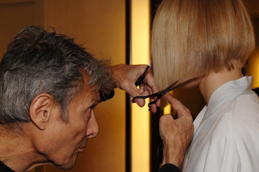 En parallèle à ses activités en studio, le maestro invente une technique de coupe unique sur cheveux secs. La volonté ? Travailler la coiffure au naturel, dans son tombant réel. Précises et coupées sur de fines mèches à la pointe des ciseaux, les coupes Maniatis Paris se replacent parfaitement.