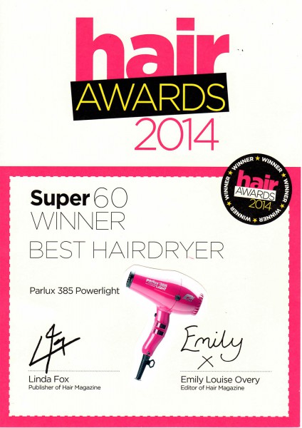 Et cette année, le célèbre magazine Hair a choisi le sèche-cheveux Parlux 385 Power Light® comme meilleur produit coiffure. Il a été sélectionné pour ses nombreuses qualités, sa légèreté, sa forte puissance, son design moderne et ergonomique, son système céramique et ionique et son atout le plus important : son faible bruit.