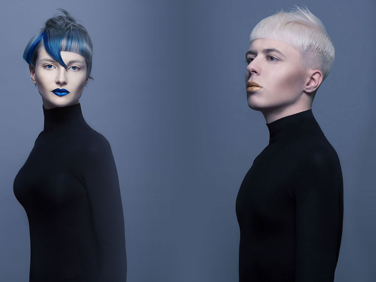 Après plusieurs allers-retours entre Londres et Bordeaux, le duo « coiffeur-coloriste » a aiguisé son œil à la technique anglo-saxonne. Pour ce shooting, ils ont opté pour un stylisme très minimaliste visant un rendu plutôt futuriste (à la limite du super héros). Capucine et Johan ont fait le choix d’associer des lignes graphiques à des formes géométriques, tout en essayant de conserver la beauté naturelle des modèles.