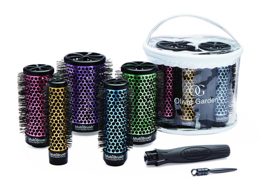 Ma trousse avec différents embouts et un seul manche de brosse, signée Olivia Garden. C’est le top pour les coiffeurs qui, comme moi, se déplacent à domicile.