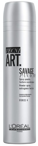 Tecni Art Savage Panache de L’Oréal Professionnel, un spray poudré pour un effet sauvage. À la chaleur du séchoir, il donne un look très naturel.
