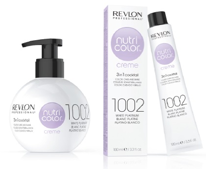 Nutri Color de Revlon Professional. Après chaque service d’éclaircissement ou de coloration, ces soins pigmentant et colorés ravivent la couleur. Sur un blond froid, j’ajoute le White pour enlever l’effet jaunissant. Je le conseille à mes clientes pour un suivi beauté à la maison.