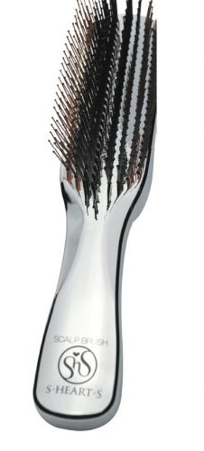 La Scalp Brush by S.Heart.S qui permet de détoxifier le cuir chevelu, d’hydrater en profondeur quand on applique un soin et de démêler. Je l’utilise sur chaque cliente après chaque shampooing.