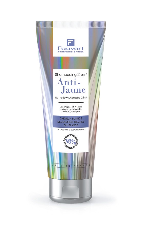 Le shampooing 2 en 1 Anti-Jaune de Fauvert est un indispensable du coloriste au bac pour les blonds froids ou polaires.