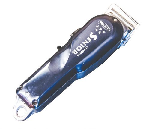 La Senior de Wahl. Cette tondeuse avec une coque en aluminium offre une très bonne stabilité. Sa tête de coupe chromée assure une haute précision.