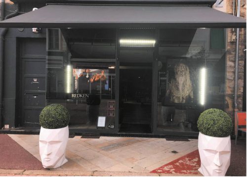 Ma vitrine. Elle doit être irréprochable, top et propre, car c’est la carte de visite du salon. Nous y avons mis un écran et soigné l’éclairage. Pas de produits ! Nous avons un coin shopping à l’intérieur.