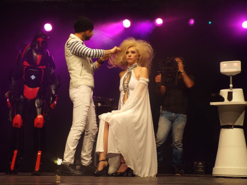 Jean-Michel Faretra a mis une ambiance de feu avec un show futuriste mêlant coupes, coiffages d’une autre dimension et robots spécialisés en coiffure.