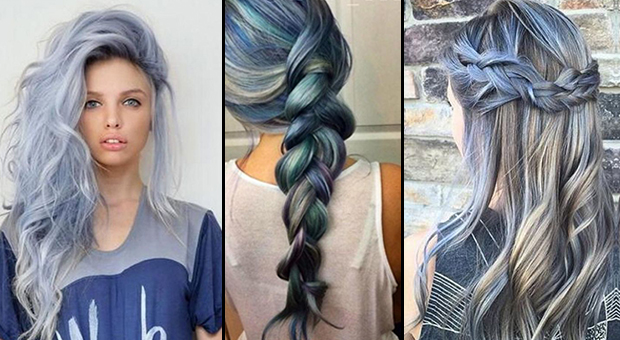 Sur une base foncée, colorez d’une teinte bleue les mèches ou les pointes. Le but, se rapprocher au maximum de la couleur denim en faisant ressortir des reflets bleus.
