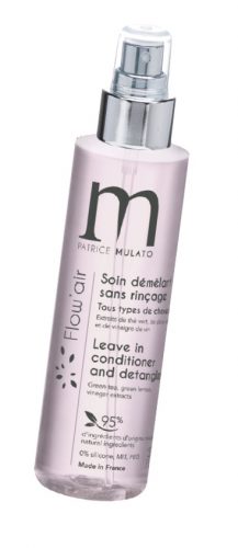 Conseillez à vos clientes un nouvel indispensable pour les matins chronométrés : le Soin démêlant sans rinçage Flow’Air, de Patrice Mulato ! Ses extraits de vinaigre de vin et de thé vert permettent de démêler instantanément les cheveux sans les alourdir et leur redonne de l’éclat. Composée à 95% d’ingrédients d’origine naturelle, sans silicone, ni MIT, ni PEG. Conseils d’utilisation : vaporiser généreusement sur cheveux secs ou humides puis coiffer.