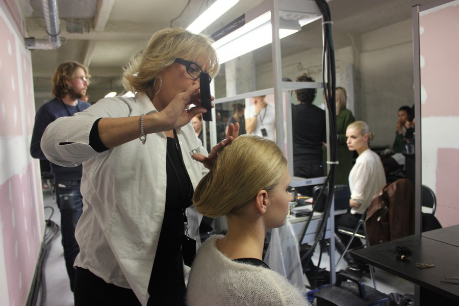Alexandre de Paris partage avec nous les coulisses de la Fashion Week Printemps-Eté 2015. Jean-Luc Minetti, le directeur artistique de la marque, et son équipe ont réalisé une trentaine de chignons. Ces chignons « banane » couture créent un joli contraste avec la collection tout en volume de Stéphane Rolland. Très graphiques et placés sur le bas de la nuque, ils nous rappellent une « Grace Kelly » moderne.