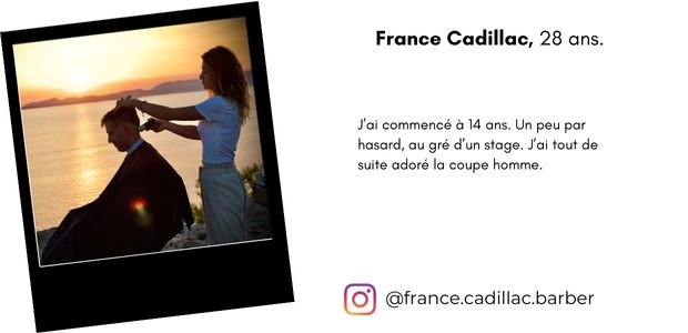 France Cadillac, 28 ans. Je n’avais pas le profil de la coiffeuse, souvent considérée comme une femme qui prend soin d’elle. Moi, j’étais un peu masculine, je faisais du sport. CAP, BP et Brevet de Maitrise… Je voulais avoir un diplôme qui me permette d’enseigner. J’avais déjà l’ambition de former. J’ai fait mon apprentissage dans un salon de coiffure qui proposait aussi des prestation massage et spa. Nous avons développé un stand barber au sein du salon. Pour cela, je me suis formée auprès de vieux barbiers.