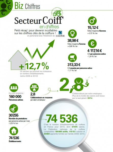 74 536 C’est le nombre d’établissements de coiffure en France pour 2010, dont 57 675 salons.