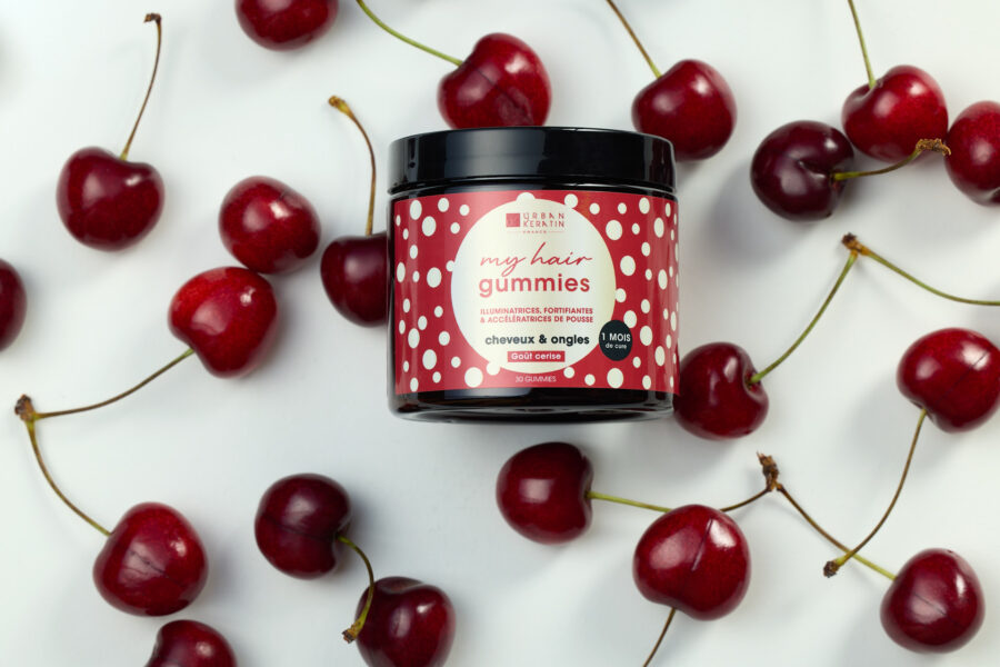 100 % vegan, sans sucre ni gluten, les nouvelles gommes à la cerise Hair Gummies d’Urban Keratin permettent de fortifier et embellir les cheveux de vos clientes. En cure de trois mois.