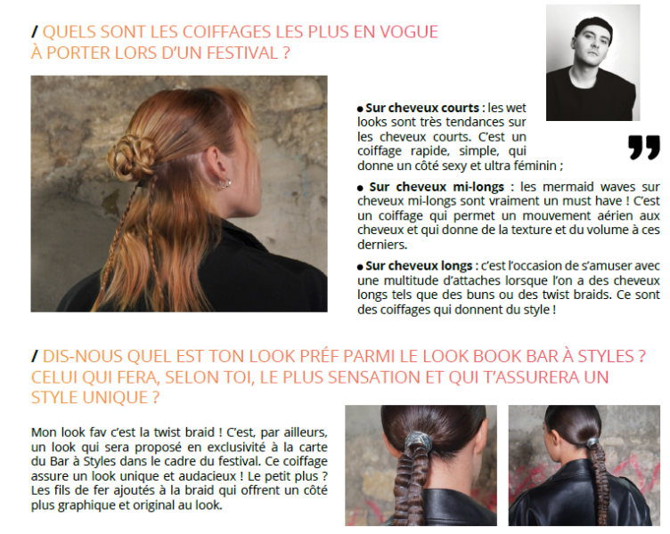 Arnaud Boujon, Ambassadeur hairstylist Jean-Louis David, livre ses conseils pour que vos clientes soient des Beauty it girls des festivals :