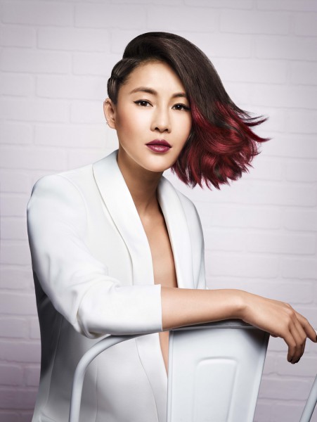On termine avec Chen Ran et son Side Swept red ombré ultra rock. Le rouge tient toujours le haut de l’affiche même quand le rose est lui aussi sur le devant des podiums. À vrai dire les deux s’assemblent. Cette saison le rouge s’applique sur les pointes selon la technique phare de la décennie, l’ombré coloré.