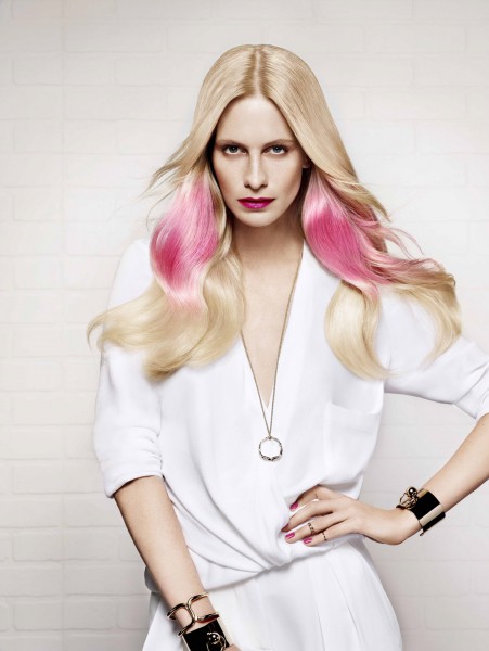 Du rose du rose et encore du rose pour ce printemps et c’est Poppy Delevingne, lumineuse et pleine de vie qui le porte à merveille. La voici avec son splashlight pink qui sublime sa chevelure. Le rose pastel sur le blond clair apporte une touche de fraicheur. Mario Charalambous, le coloriste des It-looks décrit le splashlight pink comme osé et renversant, pour lui, c’est « l’union parfaite de la force et de la douceur ».