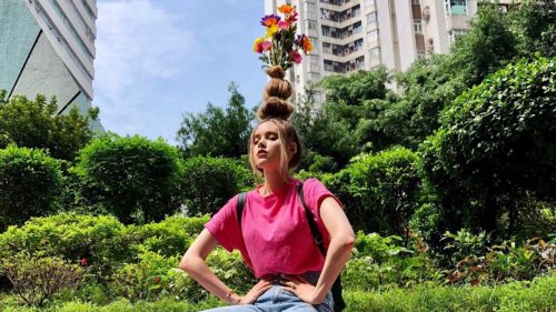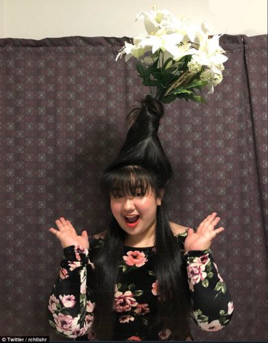 On doit cette réjouissante extravagance à la youtubeuse canadienne Taylor R. (qui vit à Hong Kong). Ses inspirations : Beyoncé et Rihanna qui exhibent des bouquets de fleurs dans les cheveux, en couverture de Vogue.