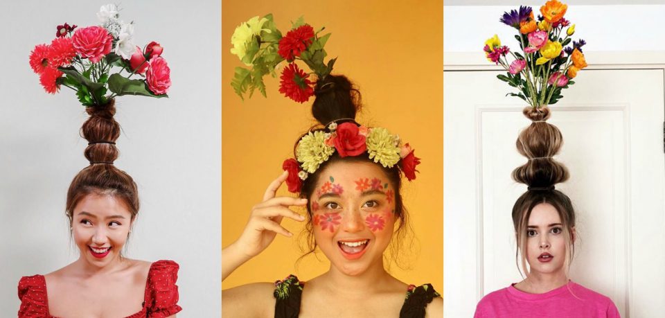 On doit cette réjouissante extravagance à la youtubeuse canadienne Taylor R. (qui vit à Hong Kong). Ses inspirations : Beyoncé et Rihanna qui exhibent des bouquets de fleurs dans les cheveux, en couverture de Vogue.