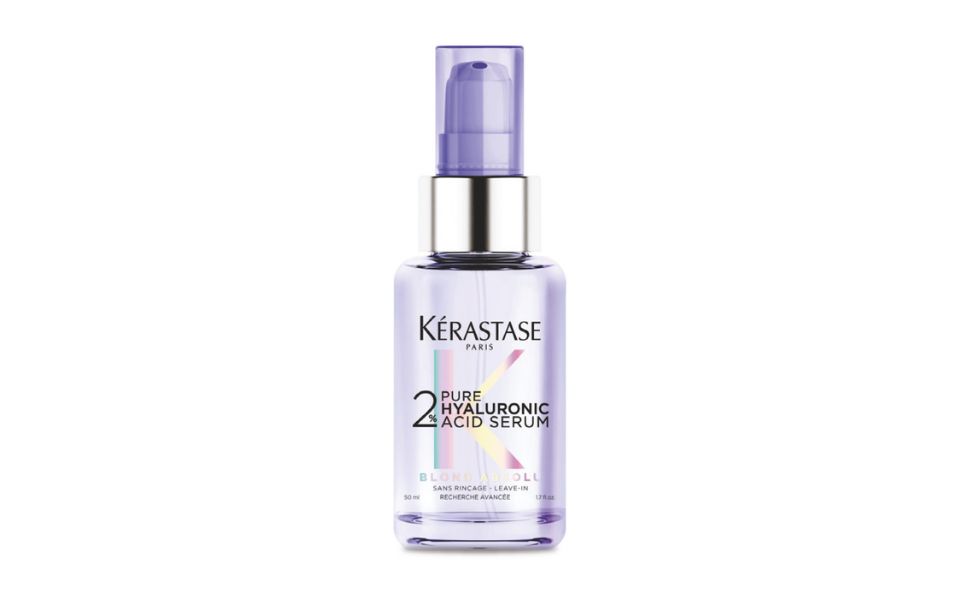 Le nouveau sérum 2 % Acide hyaluronique de Kérastase, inspiré des soins de la peau, est une application postdécoloration, qui repulpe la fibre et hydrate le cuir chevelu.