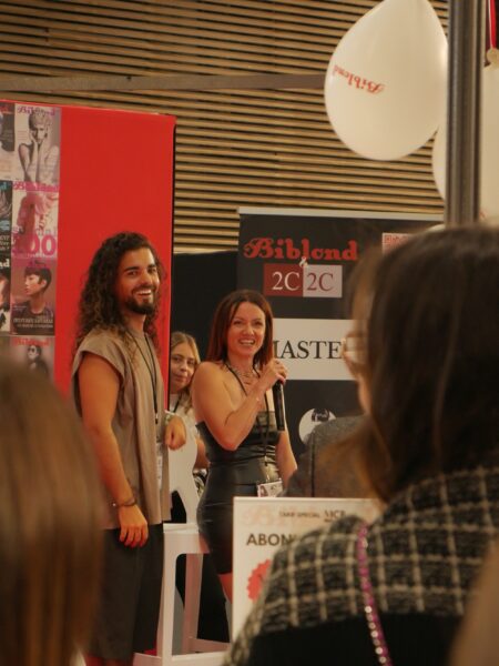 Autre temps fort, le concours organisé sur le stand Biblond. Une belle façon de débuter la rentrée sous les meilleurs auspices. Pour l’événement, 30 marques ont offert des lots qui donnent envie de gagner : paires de ciseaux, gammes de produits, accessoires, abonnements à des plateformes, séance de relooking pour le salon, tondeuses, seche-cheveux… Le tirage au sort, le dimanche, en fin d’après-midi a fait des émules. Record d’affluence pour assister au tirage au sort sur notre stand et animation au top avec l’une de nos ambassadrices, Molly Caytan ! Fous rires et bonne humeur étaient au rendez-vous !