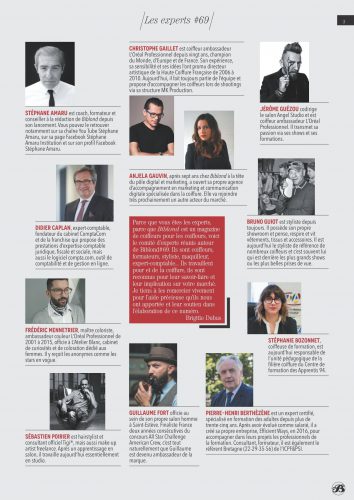 – donner la parole aux coiffeurs et aux professionnels de la coiffure. Pour cela nous avons constitué un comité d’experts (qui évoluera au fil des numéros) pour que chacun apporte son expertise et ses conseils dans tous les secteurs du marché