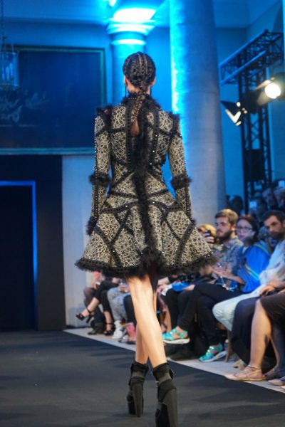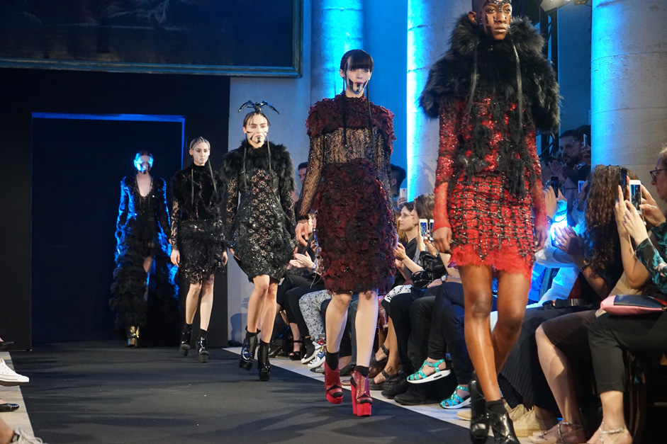 Retour sur un défilé auquel l’équipe Biblond a pu assister, en backstage, à l’occasion de la Fashion Week de Paris le 5 juillet 2016. Pour sa troisième collection, Ludovic Winterstan met une fois de plus sa couleur fétiche à l’honneur : le noir dans sa perception la plus occulte. « Sanctuaire », c’est l’histoire de femmes aux allures fantomatiques, mystérieuses, puisant dans les codes de la sorcellerie pour nous proposer des figures féminines sophistiquées mais dangereuses. Vêtues de noir de la tête au pied, de dentelles façon toile d’araignée au vison scarifié et incrusté de coulures de cristaux Swarovski, le créateur réinterprète le noir en travaillant les lignes sur le corps et le graphisme dans l’espace.