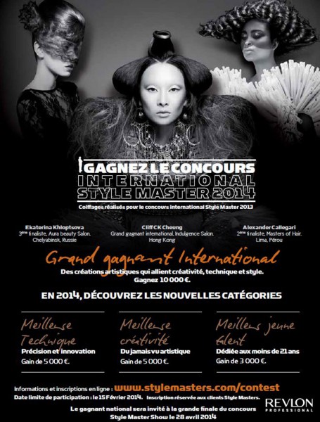 Inscrivez-vous avant le 15 février 2014 sur www.stylemasters.com/contest. L’inscription est réservée aux clients Style Masters.