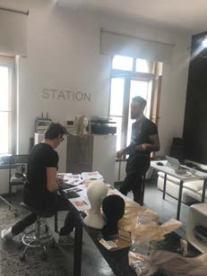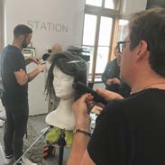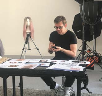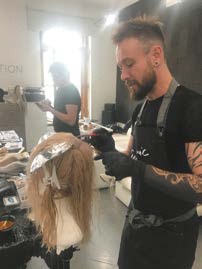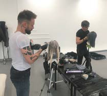 Rendez-vous fixé à 9 h pour une journée de 9 heures en continu. Ludovic décharge sa valise, Christophe consulte à nouveau les moodboards. Les deux coiffeurs échangent et organisent le timing des 3 jours qui débutent.