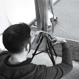 Pendant que le photographe organise le studio et prépare ses lumières, la styliste organise ses looks, la maquilleuse travaille le teint de la modèle, Christophe et Ludovic calent les derniers détails.