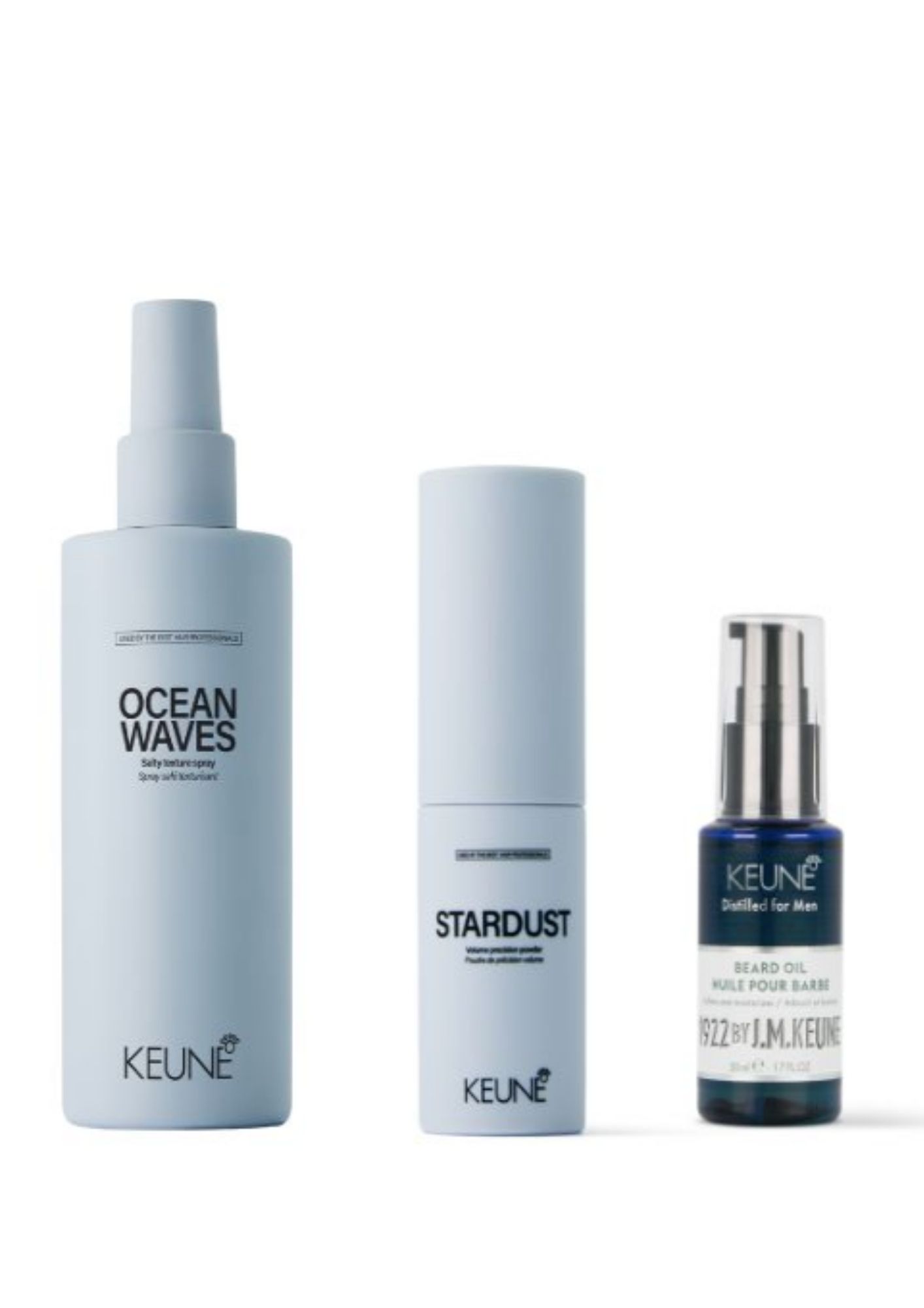 Lot remporté : lot de 3 produits d’une valeur de 80 € comprenant la Beard oil 1922 By J.M. Keune et Ocean Waves et poudre Stardust.