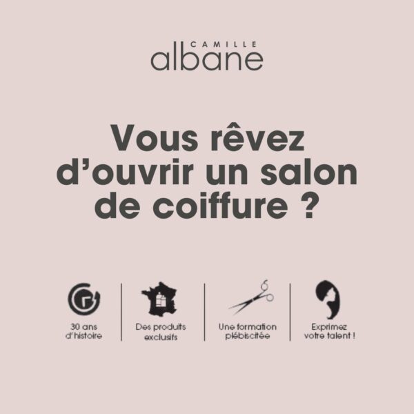 Camille Albane, marque pionnière dans l’univers de la coiffure haut de gamme, invite les coiffeurs passionnés à rejoindre son réseau de franchises. Avec un concept innovant, des formations pointues et un accompagnement de qualité, Camille Albane vous permet de développer votre salon tout en offrant à vos clients une expérience unique.