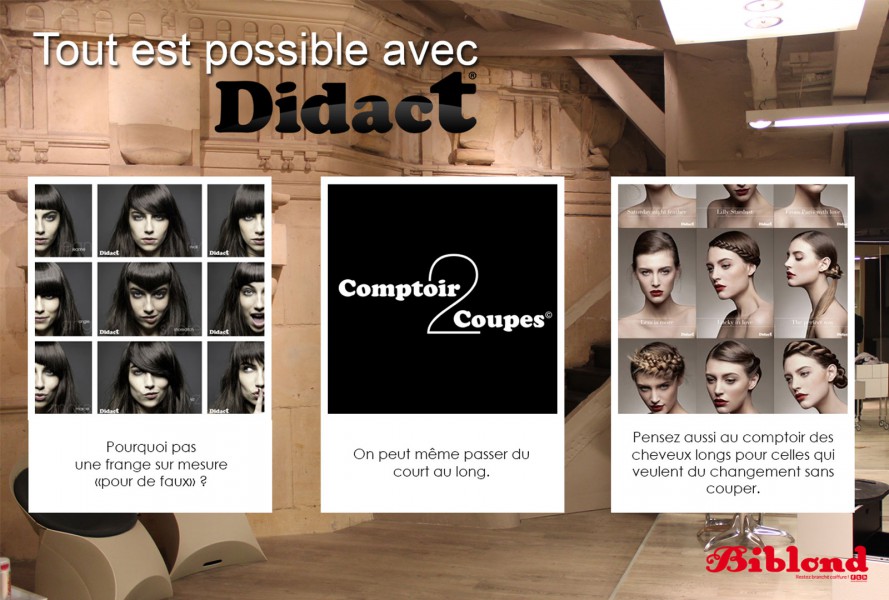 Vous pouvez nous proposer : une coupe, de la couleur, du coiffage et nous conseiller aussi des produits. Nous serons votre client du jour. Pour que ce soit plus sympa, vous pouvez nous proposer deux idées, l’une conventionnelle et une autre un peu plus avant-gardiste… Tout est possible! Pensez aussi que nous irons réaliser ce relooking au salon Didact Hair Building qui propose différentes solutions qui pourraient, pourquoi pas, être pertinente pour nous relooker… C’est à vous de voir !