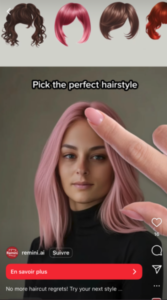 Vu sur Instagram, avec l’application Remini AI @remini.ai, choisir une nouvelle coiffure ou une couleur de cheveux n’a jamais été aussi simple. En téléchargeant une photo, les clientes peuvent visualiser leur transformation avant de passer à l’acte. Une innovation ludique et pratique qui séduit autant les curieuses que les indécises. Si l’outil n’est pas encore parfait sur tous les types de cheveux, il représente une avancée prometteuse pour aider les coiffeurs à conseiller et inspirer leurs clientes.