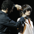 La marque Dessange fait finalement son apparition avec la présentation de la nouvelle collection puis avec plateau spécial formation, l’un des points clés de la stratégie de la maison de coiffure. Le spectacle se termine en beauté avec la sublime prestation de Claudia Zocco, coiffeuse studio Dessange et experte attaches et chignons. Elle tresse les cheveux du modèle sur son visage puis la retourne afin de l’inverser. Une attache novatrice, présentée comme une véritable oeuvre d’art à l’image de ce show qui se conclut sous un tonnerre d’applaudissements.