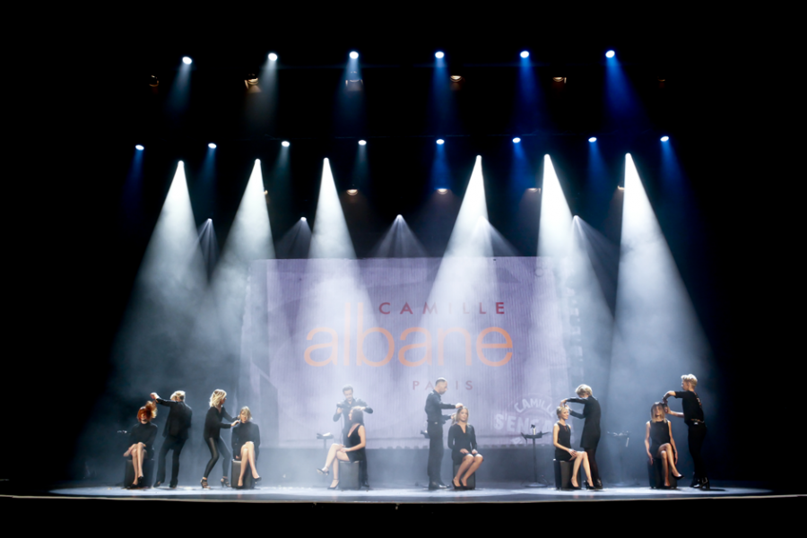 Après un discours d’accueil de Benjamin Dessange, président du groupe, le show démarre en douceur avec la marque Camille Albane. Six franchisés se chargent de révéler la beauté des modèles qui se cachent sous leurs chapeaux. Les formateurs de l’Académie prennent ensuite le relais avec un plateau sous le signe de la créativité. Le plateau final met le roux, couleur tendance de cette saison, à l’honneur aussi bien chez les femmes que chez les hommes. On passe du long au court, des extensions aux attaches en tout genre. On remarque que la tendance homme-barbier fait aussi sensation. Les clins d’œil à la nouvelle collection #monstylecamille se multiplient sur scène.